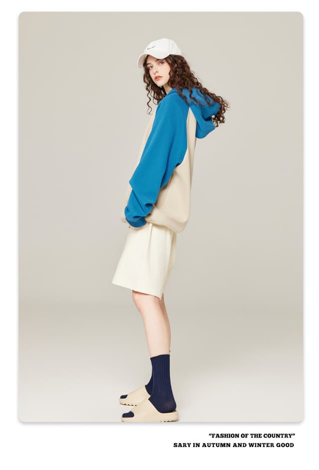2024 women's American fashion brand shoulder collocation color loose hoodie casual dopamine-color men's and women's same shirt