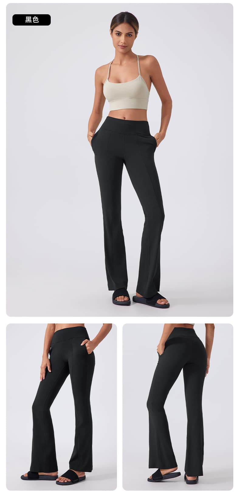 High Waist Tight Yoga Flared Pants Elastic Hip Lift Fitness Running Pants Double Pockets Leggings For Women