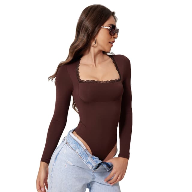 New Style Lady's Yoga Gym Jumpsuit Sexy Square Collar Long Sleeve High Elastic Breathable Quick-dry Outdoor Fitness Sportswear.
