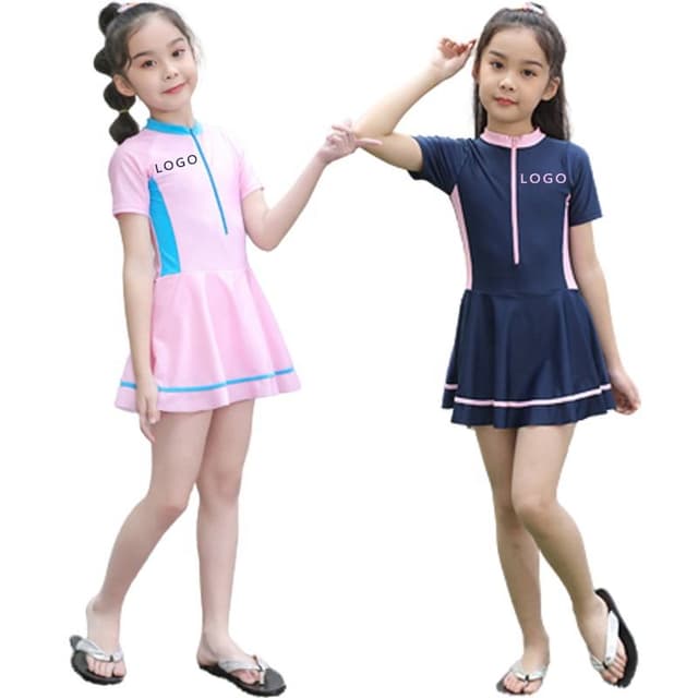 Wholesale Young Girls Swimdress 2-12 Children's One Piece Swimsuit Half Zipper Blank Printed Shorts Skirt Kids Swimwear