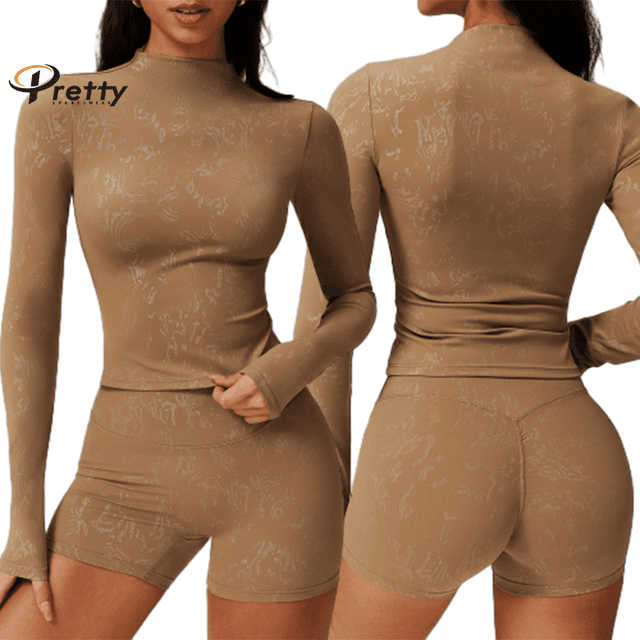 Women's Custom Logo Yoga Sets Breathable Sports Suit Quick Dry Shorts Gym Long Sleeve Workout Coat 2-piece Suit Running Top