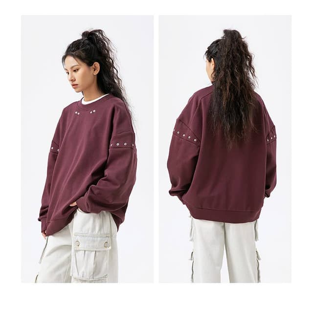 2024 New Arrival American Vintage Crew Neck Loose Hoodie Men Autumn High Street Metal Rivets Fashion Top Sweatshirts
