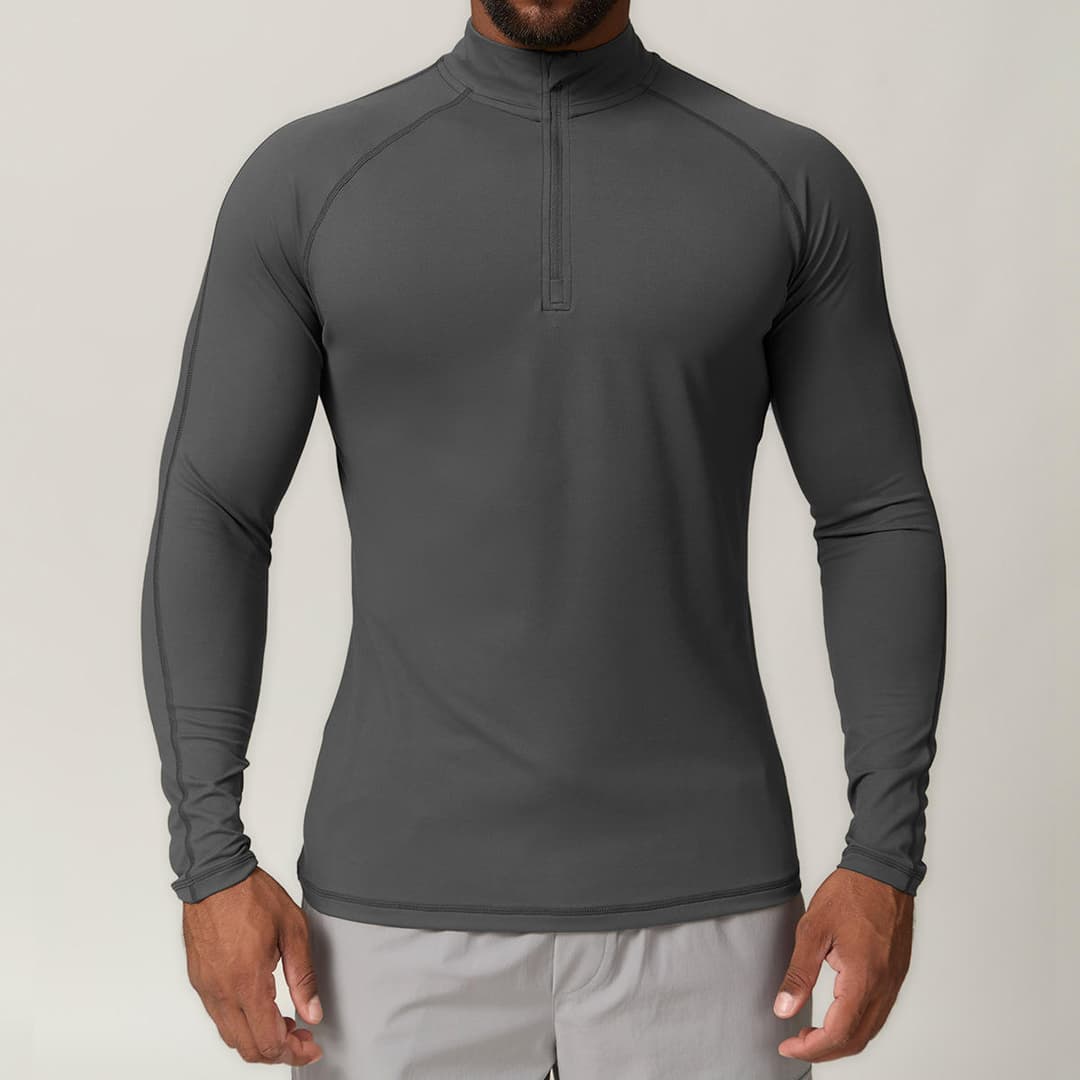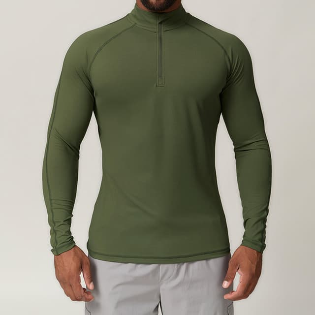 2025 Factory Wholesale Hot Sale Men's Shirt Solid Color Stand Collar Elastic Slim-Fit Comfortable Long Sleeves with Half Zipper