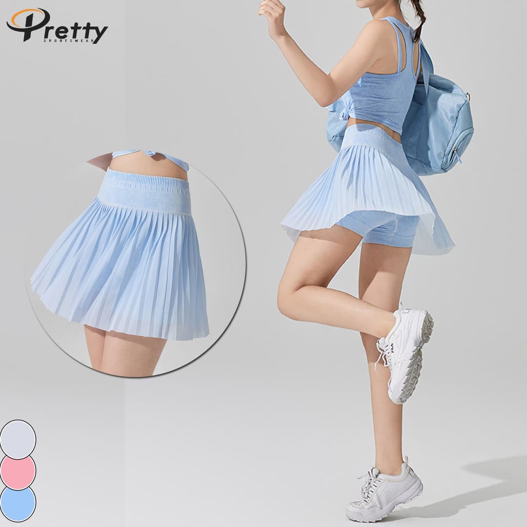 Fitness Skirts With Under Wear Washed Denim Breathable Summer Running Outdoor Sports Culottes Tennis Skirts Golf Pleated Skirt