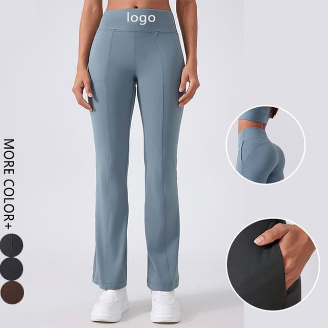 High Waist Tight Yoga Flared Pants Elastic Hip Lift Fitness Running Pants Double Pockets Leggings For Women