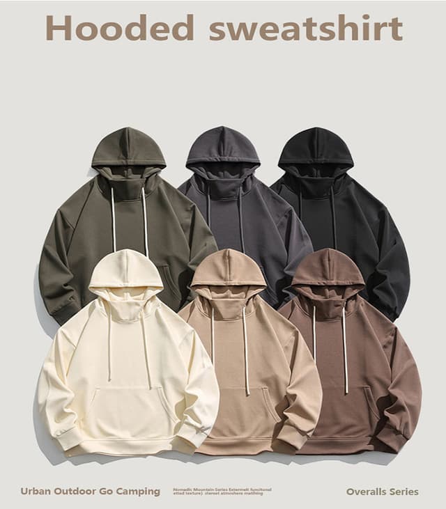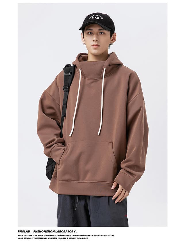 Hot Selling American Heavyweight Hoodie Men New Autumn Winter Half High Neck Solid Color Sweatshirt Loose Streetwear Unisex