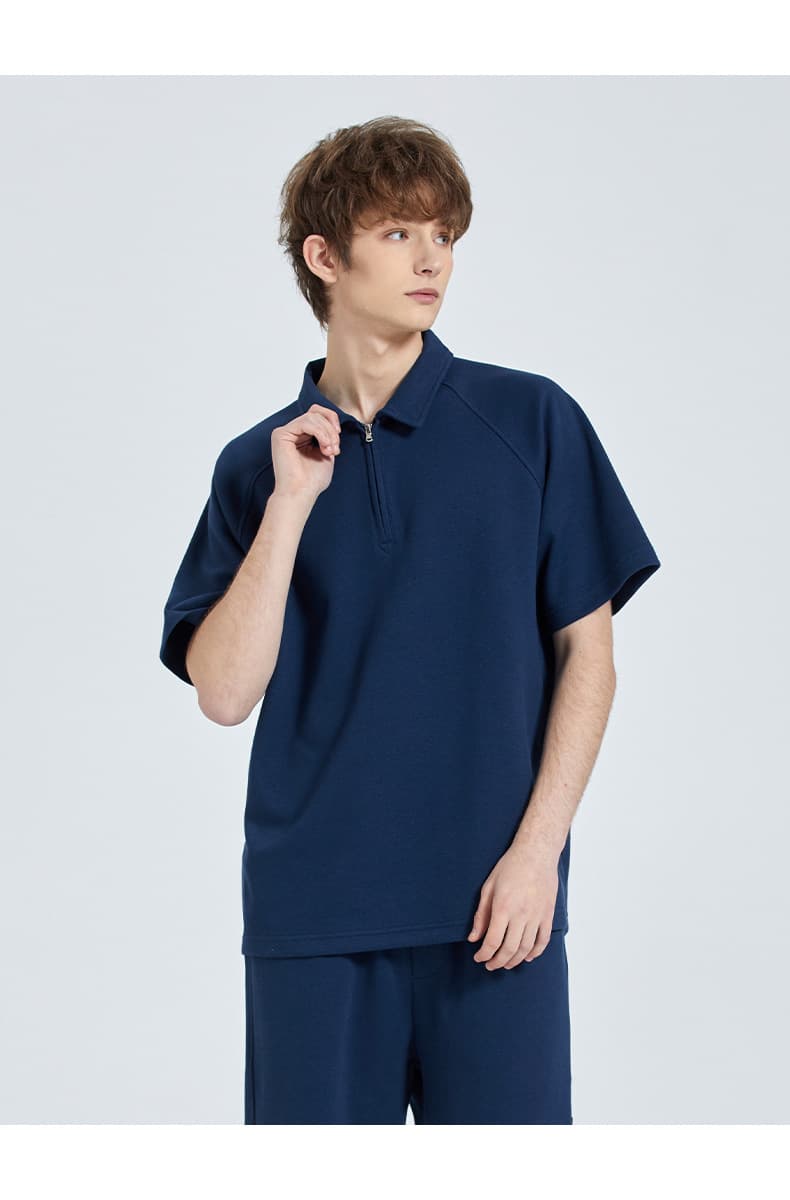 Men's Polo shirt short-sleeved summer new lapel top half zip t-shirt casual loose polo shirt men and women with the same tops