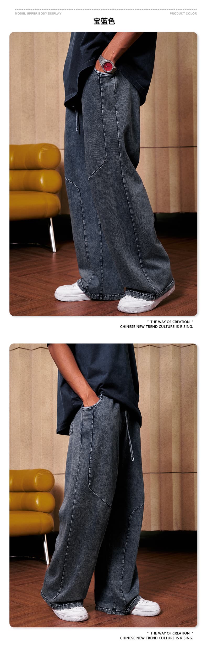 New custom men's sports trousers wide-leg trousers men loose casual retro washed straight trousers men's sweatpants