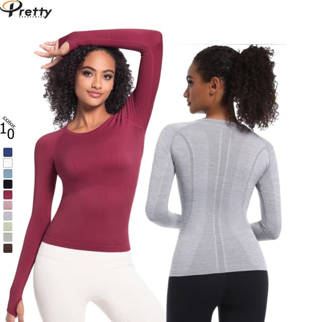 Spring seamless yoga top for women breathable long sleeve knitted running workout T shirts skinny sexy sports wear custom LOGO