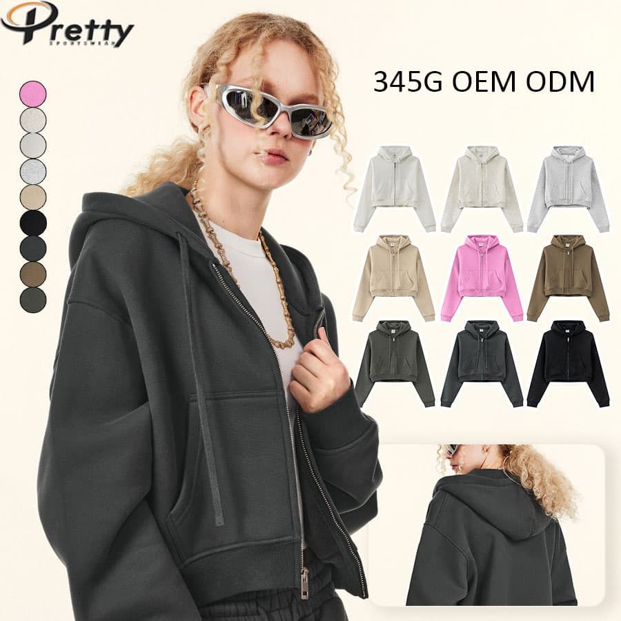 Wholesale Plus Size Womens Clothing Custom Logo Zip Up Loose Hoodie Fleece High Street Long Sleeve Jacket Workout Sportswear