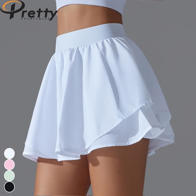 Women's Seamless Skirts With Pockets Knee Length Workout Shorts Girl Pleated Skirt Fitness Culottes Double Flounces Puffy Skirt